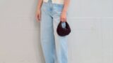 ベージュのメタルボタンカーディガンとデニムのコーデ