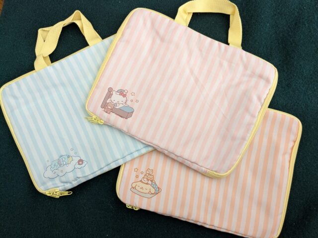 今回の圧縮ポーチはハローキティ、ポムポムプリン、ハンギョドンの3パターンです☆