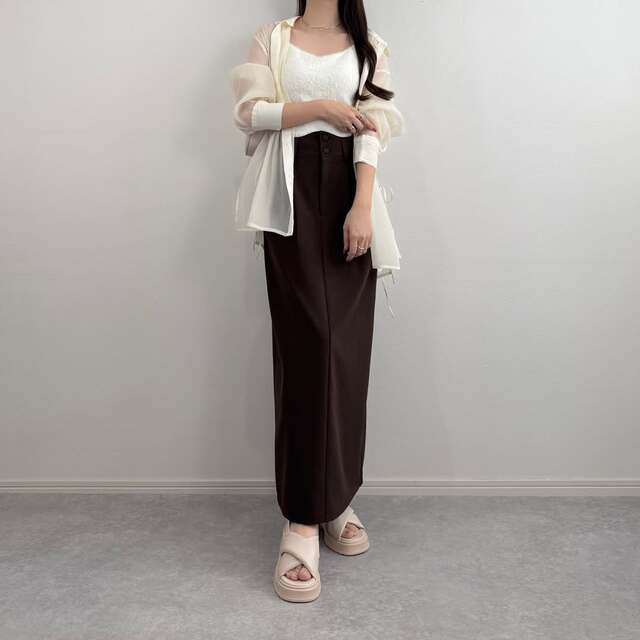 女性らしいシルエットが美しいウェーブナロースカート。歩くたびに揺れる上品なラインが特徴で、着こなしにほどよい抜け感をプラスしてくれます。