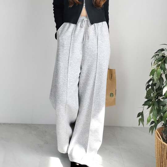 センタープレスが入ったデザインできれいめ見えする優秀パンツ。スウェット素材でリラックス感がありながらも、通勤やお出かけにも対応できるきちんと感も兼ね備えています。