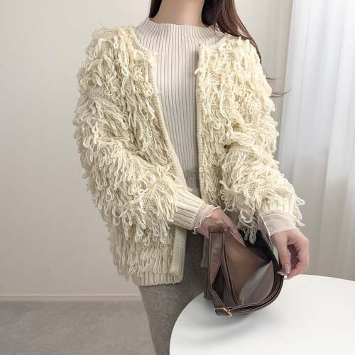 ゆったりとした着心地とトレンド感を兼ね備えたループカーディガン。立体的なループ編みがシンプルなボトムスと合わせるだけでこなれた印象に仕上がります。