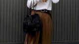 ブラウンに近いボルドーのバッグを差し色に使う事で、秋らしさが深まります。