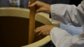 フリースワイドパンツの素材感と後ろのポケット
