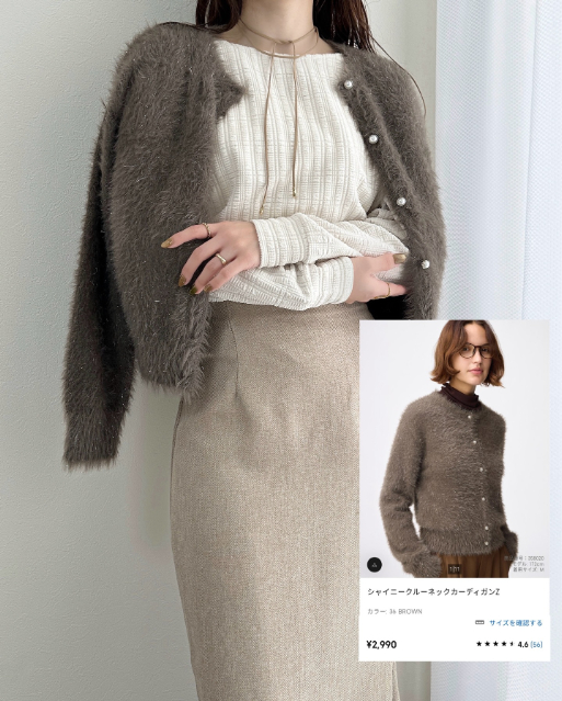 インナーとカーディガンがセットになったお得感のあるアイテムで、コーデがそのまま完成するのが魅力。統一されたデザインのおかげで簡単に“きちんと見え”が叶うので、朝のコーデに時間をかけたくない日にも頼りになります。